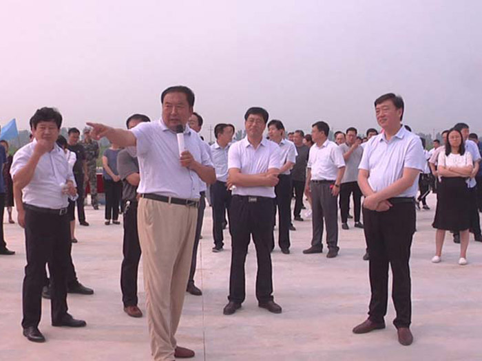 查看更多2018年7月19日,縣長王成宗(中)、開發(fā)區(qū)主任候會(huì)然(右一)在新公司施工現(xiàn)場視察工作